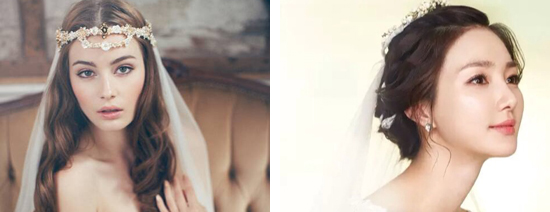 空气感的刘海很好修饰出小巧的脸型,适合圆脸的韩式新娘发型,搭配水钻发箍,增添几分时尚感,看起来很甜美优雅哦。