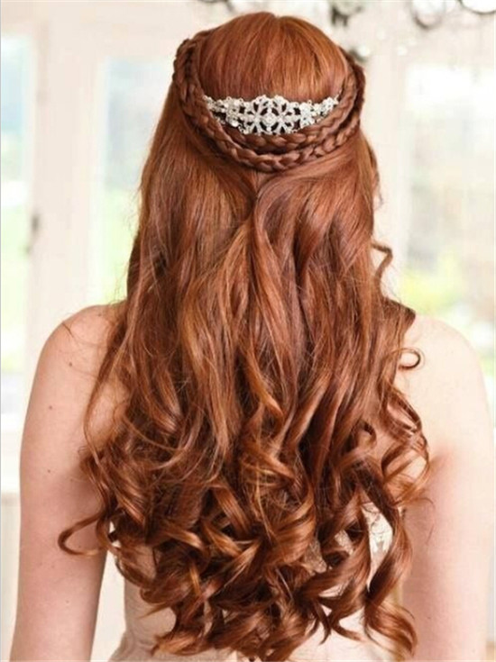 用发胶固定出头发的卷发,制造出一种具有凌乱的感觉,然后用发卡挑起部分头发夹住,营造出美丽的感觉,不过此款较好搭配纯银新娘发卡或者是白色玉石发饰和花簇钻石吊坠较好,更能将新娘的削皮可爱显露出来。