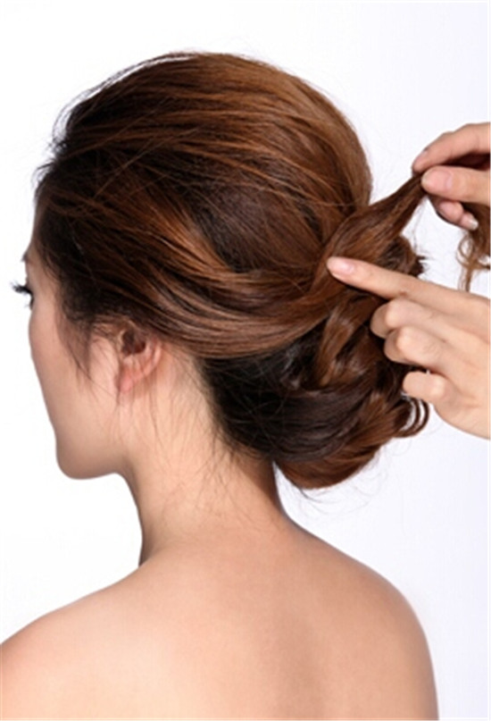 将头发像后面靠拢,在后发髻的地方固定住,同样不要贴的太紧,要留有蓬松感。
