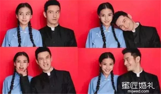 民国风、军旅风也是一大热门,可能明星的爱情也想来一次时空的穿越吧。陈小春应采儿搞怪婚纱照也是非常有自己特色呢。
