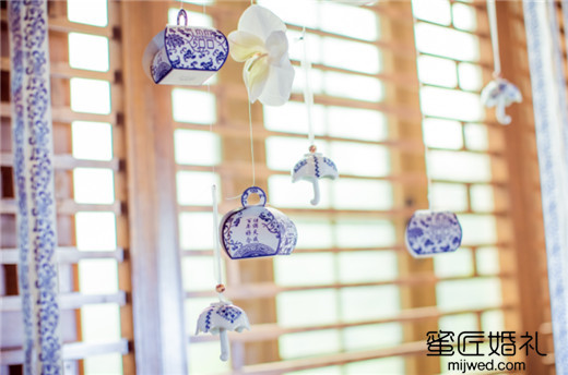 这个创意中式婚礼与传统中式婚礼不同。婚礼的主题采用的是青花和白色,清爽而个性。.“青花瓷象征着永恒,成色积淀永不褪色。”永恒的青花瓷为见证,期待婚姻能像青花瓷一样经得起时间的考验.婚礼的邀请函和婚礼相搭配,挂饰及餐具也是青花系,“希望爱情也跟青花瓷一样,永不褪色,长长久久。”