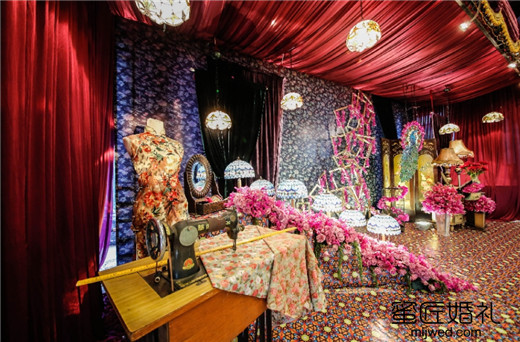 灯红酒绿,纸醉金迷,这是较符合旧时代上海的形容,精美奢靡在浮华中透漏着堕落的美感,这个创意中式婚礼的主题正是民国时期的旧上海,以豪华的紫色为主基调,搭配色彩艳丽的鲜花和琉璃灯营造一种奢华的氛围,将整条旧上海的街道拖进了婚礼,让新人和来宾尽情的感受属于东方明珠的风情。