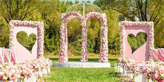 铁艺婚礼仪式亭铁艺的布置既充满了浓郁的欧式文艺气息,同时还可再循环利用,环保低碳。它可以将普通的高挑酒店大厅打造成英国皇室殿堂的感觉,让人联想到高贵的皇室婚礼,是婚礼仪式亭类型中较受欢迎的一款。