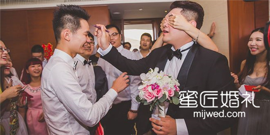 3.如果新郎的好朋友比较多的话,那就可以在去新娘家迎亲的时候多叫上几个伴郎,既是让她们来助阵,也是为了在伴娘提出种种要求的时候让他们来帮忙。
