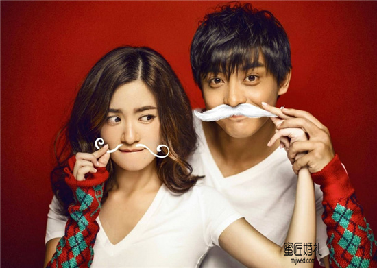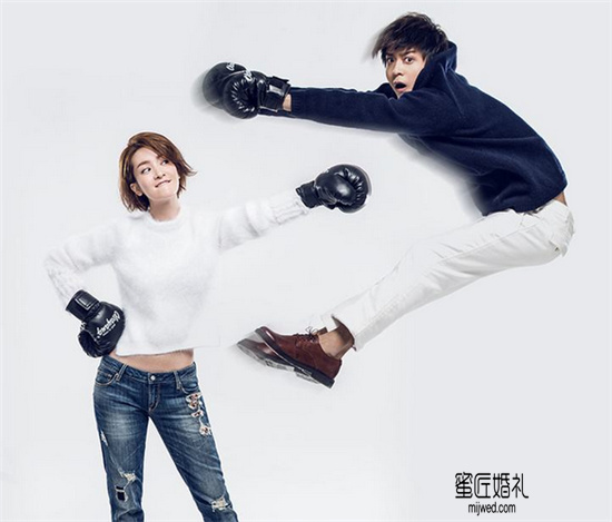 这一组是典型走女方欺压男方拍照风格,一拳把自己亲亲老公打飞。提醒除了两人关系甜蜜不平等的地位。很多婚纱摄影都流行这种风格,一般穿着都是中式礼服。两人身着情侣休闲服也是非常好看。