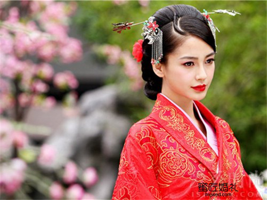 中式婚礼布置新娘妆注意事项,就是口红颜色一定要大红。我们腮红也可以多上点。这时候新娘妆就一定要大气,带点御姐风格。就像范冰冰演的武媚娘成为皇后时候妆容,就是典范。