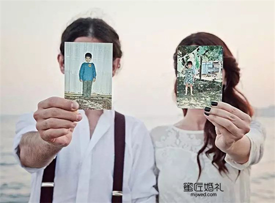 想要复古风的婚纱照,我们可以准备两台老相机当婚纱照拍摄道具。亦或是自己小时候旧照片,蜜匠婚礼认为就像两个新人们童年在婚纱照里相遇,也是非常feel。亦或是拿着端庄典雅的乐器可以营造这种效果。一个钢琴一个小提琴摆拍相信也非常唯美复古。