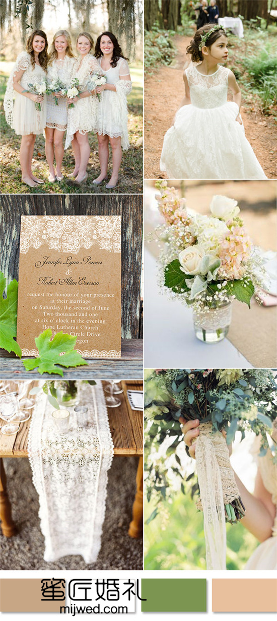 准新娘都有一份少女情节。喜欢蕾丝喜欢公主形象,还有清新的颜色。那么为什么不用您喜爱的这些东西打造一场极致的梦幻婚礼。蜜匠婚礼教您如何运用蕾丝和您喜欢的婚礼主色调,来一场蕾丝婚礼创意布置。