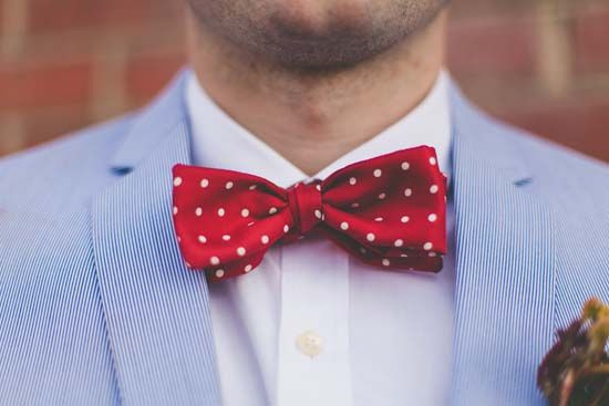 条纹与方格是新郎领结与衬衫搭配永不落伍的款式,如果新郎想要低调一点的话,那新郎可以搭配素色或牛仔衬衫;如果新郎想要挑战一下的话,那可以用条纹领结搭配方格衬衫,或者条纹搭配条纹。