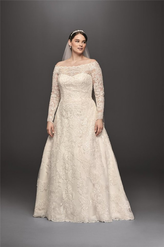 蜜匠婚礼小编提供一些和其它仙裙并无二致的微胖新娘婚纱,一的区别就是码数更大一些。相信每个女孩儿都能在新婚当天成为较受瞩目的小公主。如果对自己臂膀不够自信的微胖新娘,我们首选建议可以选择长袖款式。整个裙身蕾丝刺绣型,纱质婚纱绣满了刺绣和亮片。看上去显示新娘奢华。