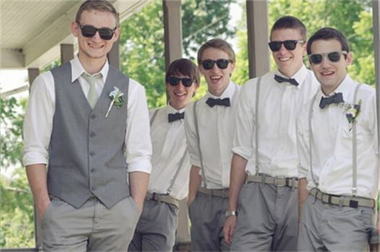 伴郎团选择一款时尚又低调的灰色西装统一着装会成为婚礼上一道帅气的风景线,这时候新郎也可以选择同色系的西服套装,只需要在面料上下点功夫就够了,富有光泽感或者纹理高贵的面料都是上选!