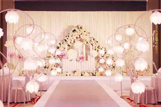 清新淡雅、精致温馨、梦幻香槟、手工花艺、龙骨设计、管风琴造型。下面长沙婚礼布置公司蜜匠婚礼主题提供者,就从主舞台、仪式通道、迎宾区、签到区、灯光区域的布置物料进行详细说明。