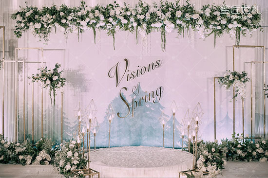 清漾林语:想要森系风格,那这种大气档次的就很合适了。整场婚礼色调以40%的绿+40%的白+20%金色组成,摒弃繁复夸张的装饰,运用了婚尚几何元素,配合明快的色调流露出生机盎然,既维持极简线条设计感,又巧妙把握住视觉情绪;透露着生活本真的自然和纯粹。