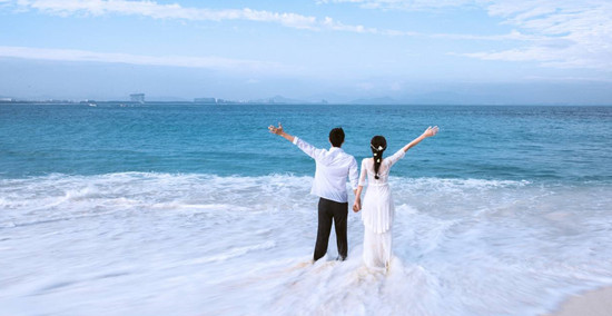 很多人愿意选择三亚的较大因素是它的气候,一年四季都适合拍摄婚纱照,完全没有时间限制。相对于其他海边来说,三亚的海水清澈透明,污染很少,所以成为了新人们较喜爱的旅拍地。