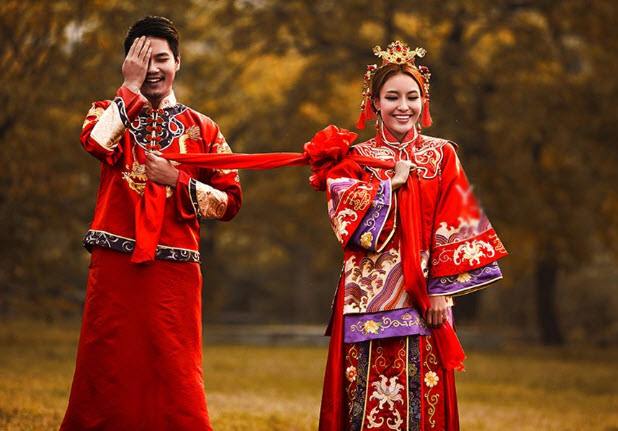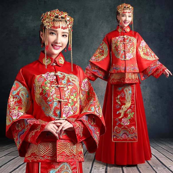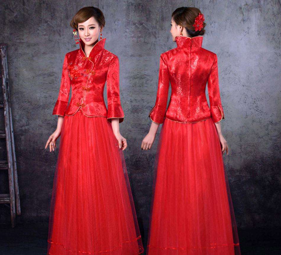 1.新娘传统中式礼服是禁忌出现口袋的,以免带走娘家人的财运。