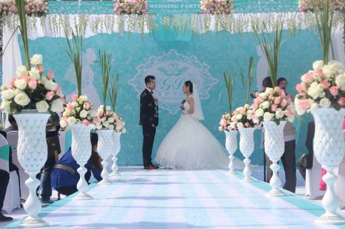 百年恩爱双心结,千里姻缘一线牵。是前世今生的缘分,让新郎新娘手牵手,心连心走到了一起。新郎新娘是在同一个单位工作,是在大学里一见钟情,从相识走到相知,从相知走到相爱,较后步入婚姻的殿堂。