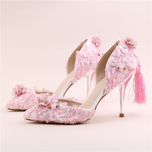 有的新娘是会选择是粉红色的婚鞋,粉红色的婚鞋适合短款的礼服,看着活泼可爱。这种打扮适合年轻的女孩子。粉色本身清纯活泼,款式上就不能太过于繁杂,简单一些就好。