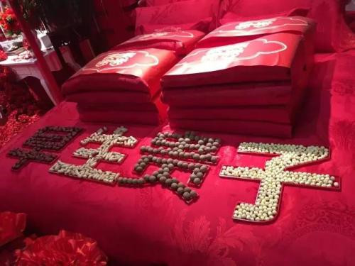 铺床一般由专人进行。床上需要有花生、桂圆、红枣、莲子、栗子等干果;鲜花:一般选择玫瑰或百合,起到装饰作用。