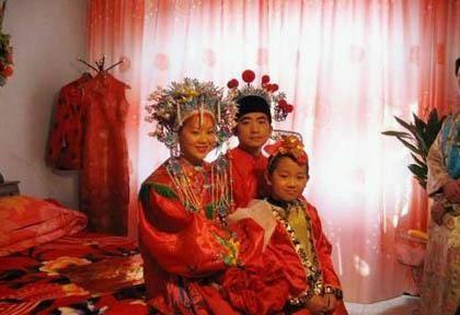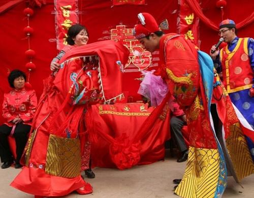 传统的中国婚礼上,新娘子要穿非常漂亮的汉服,汉服是具有中国特色的传统服装,具有历史意义和严肃的婚姻寓意。