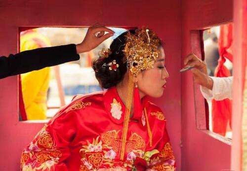 10、哭嫁:据《礼记》记载“孔子曰:嫁女之家,三夜不息烛,思相离也。”在古时,因为交通没有现代的方便,女儿出嫁後,就很难有机会可以见到家人。而事实上,出嫁後的女子也不是可以像今天一样,随时可以返回娘家探望家人的,回娘家需要得到夫家的批准。