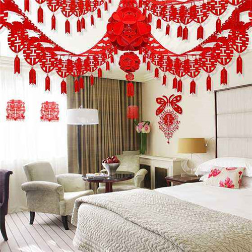 大红色为主的传统床上用品,也是必不可少的婚房布置,浪漫而且寓意婚姻甜蜜美满,传统而不庸俗。