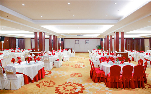 宴会厅所选用的桌子一般来说规格都差不多,十人桌直径在1.8m左右,12人桌直径在2m—2.2m左右为佳。
