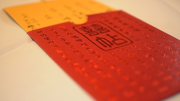 传统型——大红色卡烫印金色字。