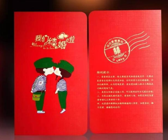 现在也流行个性化的请柬,有的人更加喜欢个性卡通的请柬,也有的喜欢不一样的样式。