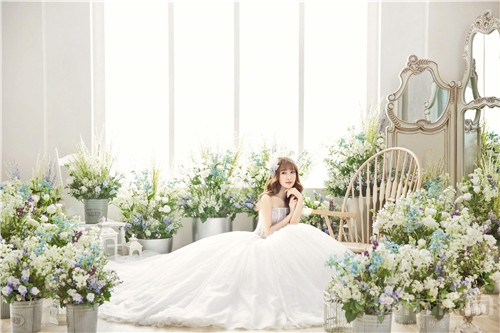 2.选择垂感好的婚纱:韩式婚纱照服装肯定是要选择韩版的婚纱,韩版的婚纱优点在于垂坠感好、线条流畅。韩国婚纱的面料比较奢华,婚纱上多镶有珍珠、钻饰品。也可以考虑宫廷韩服也会给你不一样的美。