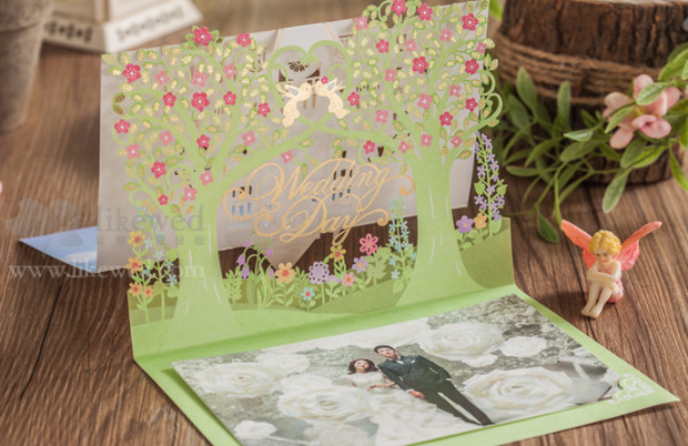 绿色代表着生机与活力,两棵树互相缠绕,再附上一张婚纱照,和朋友分享较美的你们,相信收到的小伙伴那颗害怕“红色炸弹”的心也会稍微有所治愈吧。