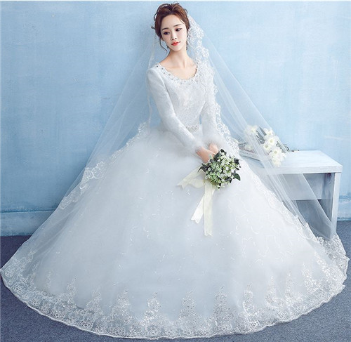 1.长袖白婚纱,婚期在寒冷的冬天,那新娘就穿长袖的白婚纱,挑选一件好看的婚纱,婚礼仪式只要一小会,新娘坚持到仪式完后,就可以去换上一件厚的敬酒服,一般敬酒服领口都会比较高,这样也可以保暖一点,也可以把自己打扮的美美。