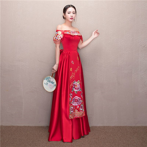 中式婚礼的新娘敬酒服就要选择旗袍或者是禾服,旗袍可以更好地修饰新娘的身材,让玲珑的曲线展现出来,是中式婚礼敬酒服的较佳选择。