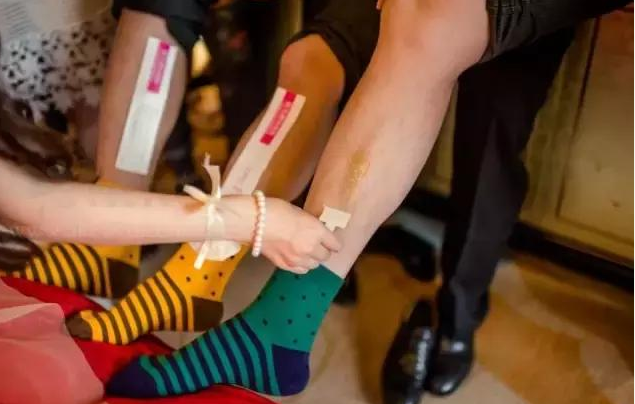 4、撕腿毛,这个是现在比较火爆的游戏了吧,我觉得大家应该都比较清楚哦。准备好透明胶贴在迎亲团友的小腿上,嘶..伴娘要将透明胶撕下来。这时候就要看伴娘对你好不好了,看看是快准狠的伴娘要多还是慢慢撕扯折磨人的伴娘多。哇,画面想想都起了鸡皮疙瘩,新郎伴郎们你们好好准备吧。