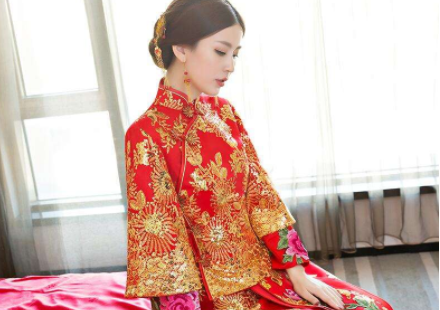 2、颜色选择传统红色是较常见的,红色很适合肤色较白的新娘。这样搭配起来的话,会更加显得新娘俏丽动人。金黄的的礼服也是一个不错的选择,如果不喜欢红色的新娘的话,这一款颜色的礼服倒是一个不错的选择。