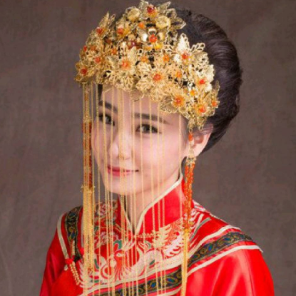 在发饰这一方面,中式婚礼新娘的头发都是盘上去为主然后在配上一些发饰。根据中式的婚礼来说发饰用金色是较好的,配戴在头上显得更加富贵大气。