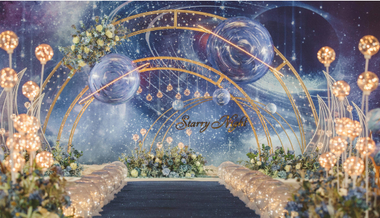 星空人如其名肯定是在漫天繁星下举办的婚礼,在一望无际的银河里,新郎愿意包下整个星空。为了新娘这颗的小星星,揽下整个星空而点亮这颗小星星,新娘穿着婚纱走在“银河”里是多么的璀璨耀眼。