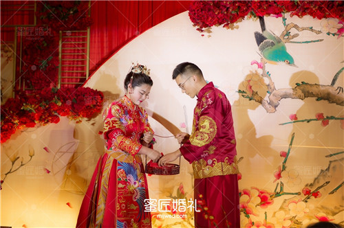 7.一声鞭炮震天惊,男方迎亲到门中。家人盛装红似火,乘轿骑马归郎厅。三拜纳定夫妻义,恩重如山似海情。从今相扶人到老,和谐美好幸福中。