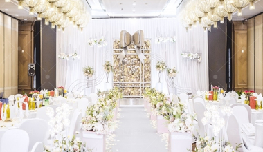 我们首先要去酒店方租场地,这个场地有着很大的作用关键是灯光,这个灯光不是普通的灯光,而是要那种暖色的灯光,就是不是很亮的那种,当然如果中间有个很高档的吊灯的话,这是更好的,会给婚礼主题为暖色提供更大的优势。