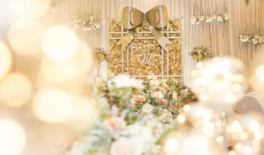 我们的现场布置不用那么单调,尽量把场地租大一点的,可以在周围用和主题系相似的装饰品来衬托整个婚礼现场。