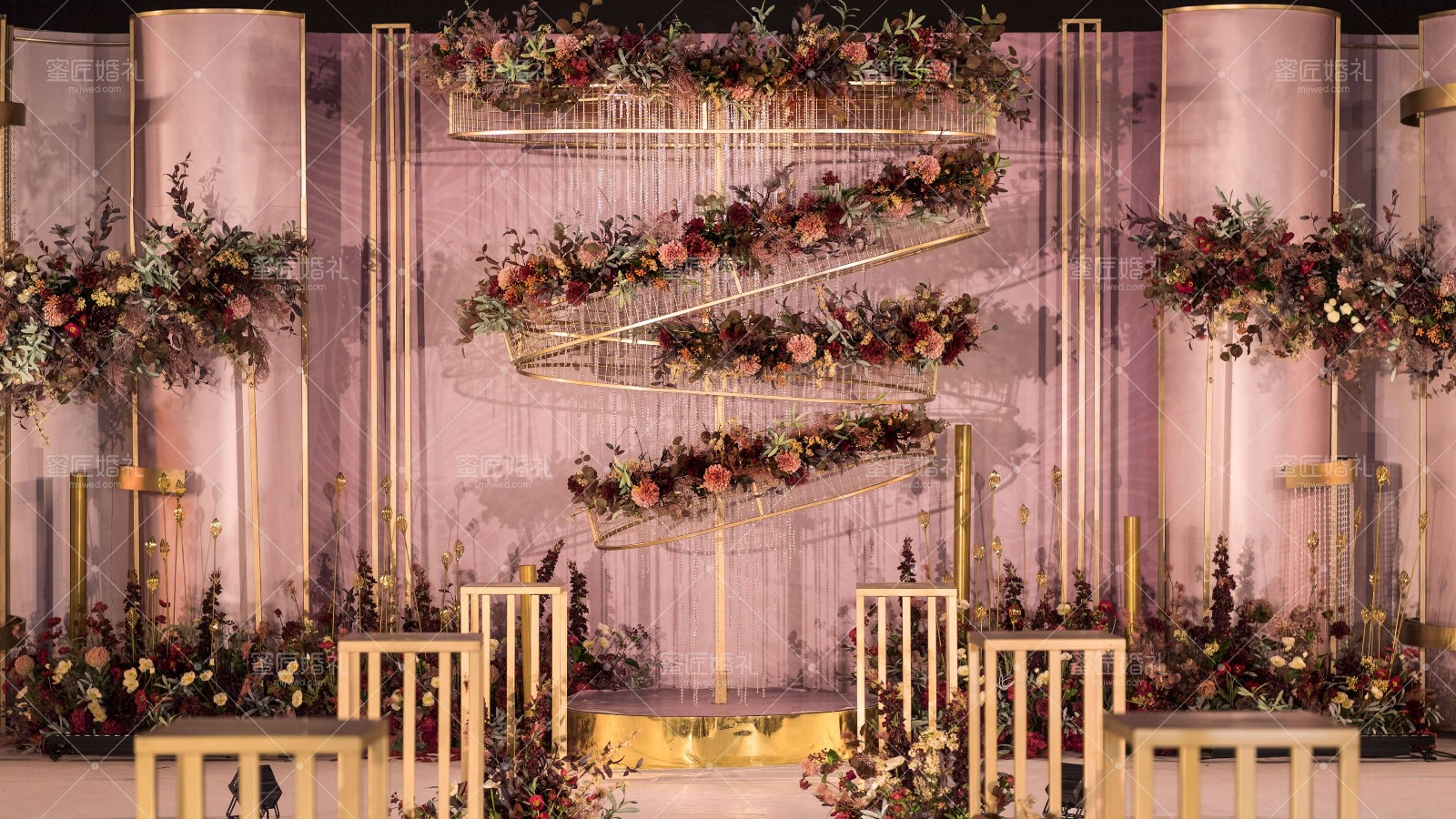 整场婚礼以深豆沙色与浆果红的温柔撞色中再以金属质地配色点缀其中,张弛之中打造一个柔和且独立的婚礼空间。别致质感而又不失浪漫温情,拉开了如电影唯美诗意的篇章,彰显独特的高级感。