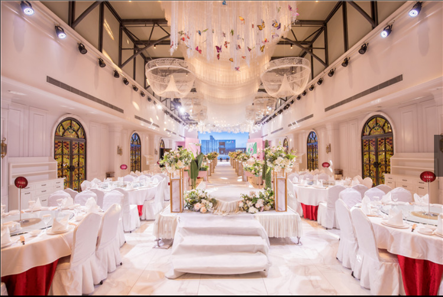 4.酒店布置,迎宾牌、席位卡、红包、喜糖、路引、签到台、签到本、签到笔,另外一些装饰品如气球拱门、喜字、拉花、彩带、气球、红色地毯、电子礼炮、礼花、喜帖、舞台背景、烛台、追光灯、泡泡机、冷焰火、手捧花、干冰机、罗马门、罗马柱等。婚礼上用的物品很多,新人可选择其中部分即可。