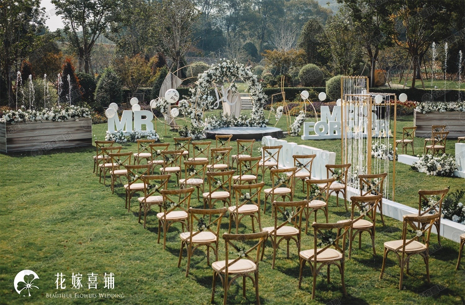 如今户外婚礼可以说是非常受新人的喜爱,户外婚礼既浪漫又好看,在户外婚礼中草坪婚礼更是深受大家的喜欢,简约、小清新的风格也更是它的一个加分点,那么草坪婚礼出现怎么布置呢,有什么技巧吗?下面就一起来看看吧。