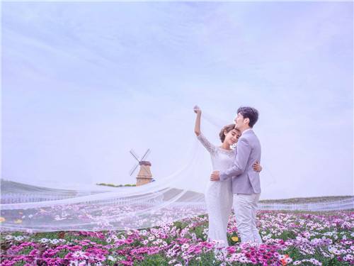 郑州在春季时节是非常的美丽的,在春天不仅有大家喜爱的油菜花,而且还有更多不同风格的花朵,五颜六色的花朵十分的漂亮,红色,黄色,紫色,这么多种类的花新人们随便来选择自己鲜花的来当婚纱照背景。