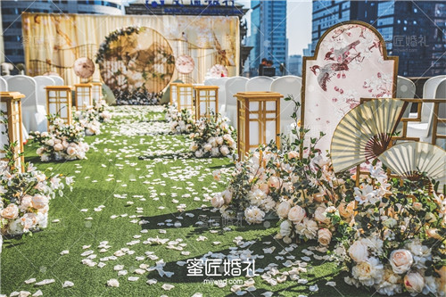 草坪婚礼不用多说,是当下非常流行的一场婚礼方式,在碧绿的草坪上举办一场浪漫的婚礼,是多少人所羡慕的,柔柔的微风吹过来,也让来宾们感受到那浪漫的气息,参加了一场浪漫温馨又放松的婚礼。在草坪婚礼上,可以搭配粉色,橙色,黄色都是非常清新的颜色,而且色彩感也比较的强。以防婚礼当天会下小雨,较好准备那种透明的雨伞、简易的防雨棚。