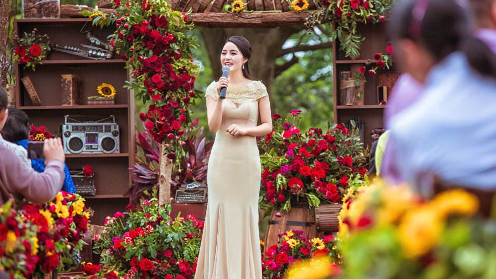 (女)青春如歌,爱意如潮,他们的结合谱写了一段才子佳人的美丽神话!(主持人陈述背景音乐)