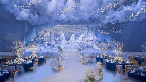 婚礼一般都会确定一个主色调,而提到海洋婚礼,毫无疑问,婚礼当然是用蓝色为主色。用经典的蓝色布置出蓝色海洋的感觉,海洋元素的运用来点亮婚礼的布置。