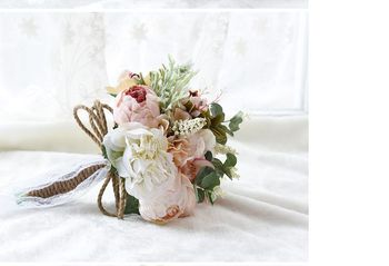 手捧花由新郎拿着,去迎娶新娘,然后新娘在典礼上一直拿在手里。