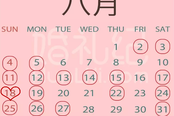 5、2019年8月结婚吉日总共有26天