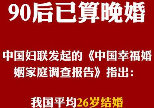 因为现在国人普遍是八周岁才上小学的,接受完九年的义务教育后就已经十七岁了,高中三年,上完后就已经二十岁了,现在社会的竞争如此激烈,大学毕业生也是很难找到合适的工作的,这就使得有些人选择继续深造读研,这样算下来读完后就已经到了二十七岁了,这些年来已经习惯了自己一个人的生活,加上想再玩几年的心态,现代人到三十岁的时候结婚已经是常态了,而到了三十五岁之后,等发现自己真的不能再玩的时候才着急结婚,当然,这也只是个人的观点,至于具体多少岁算晚婚,不同的地方不同经历的人会有不同的看法吧。