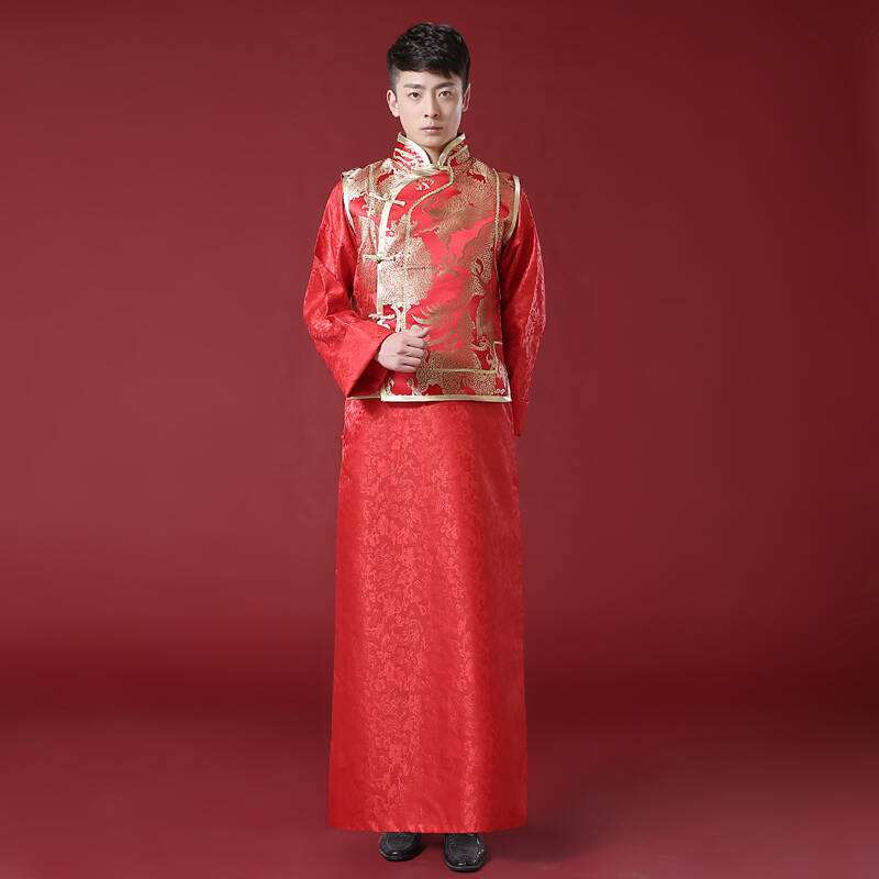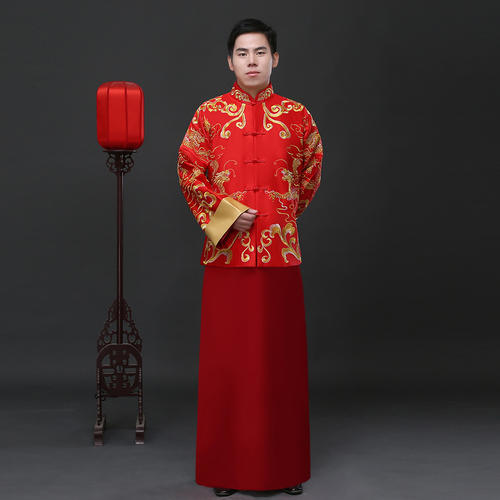 新娘穿着秀禾服的时候,新郎常以长袍马褂搭配,马褂彰显身份,很贵气,而且与新娘的中式结婚礼服搭配非常和谐。此外,马褂分为大襟、对襟、琵琶襟等多种形式。